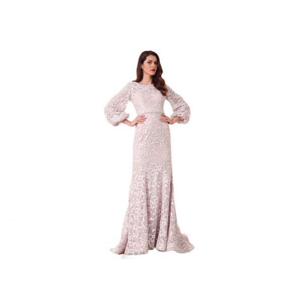 Three Quarter Sleeve Sweep Train Muslim Evening Dress Mermaid Style Images |